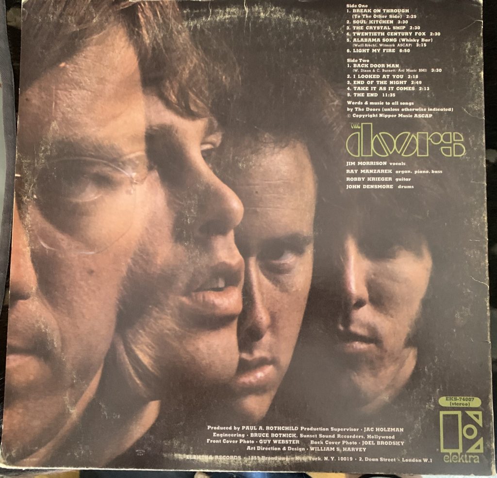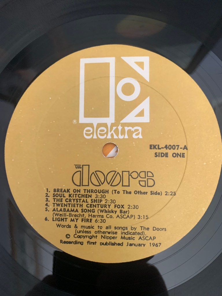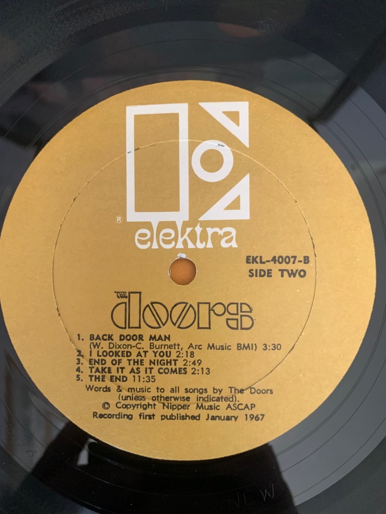 Ad oggi possiamo offrire una rarissima stampa MONO, cosiddetta “uncensored” (dove il mix originale rende “Fuck me, baby” pienamente udibile durante “The End”) del primo album dei The Doors, prodotta da Abbey Record Manufacturing Co. (famosa fabbrica dei dischi) negli USA e lanciata sul mercato americano da Elektra in 1967. Tale disco è tipo “misprint”, cioè viene accompagnato con la copertina STEREO. Contiene anche originale generica copertina interna dell’Elektra.